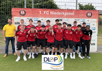 [30.07.2025] Die U19 des 1. FC Niederkassel durfte sich gegen Ende der Saison noch über neue Polo-Shirts und Hosen freuen. Ermöglicht wurde diese großzügige Spende durch Benjamin Meybohm, geschäftsführender Gesellschafter der DLOP Pneumatics GmbH.